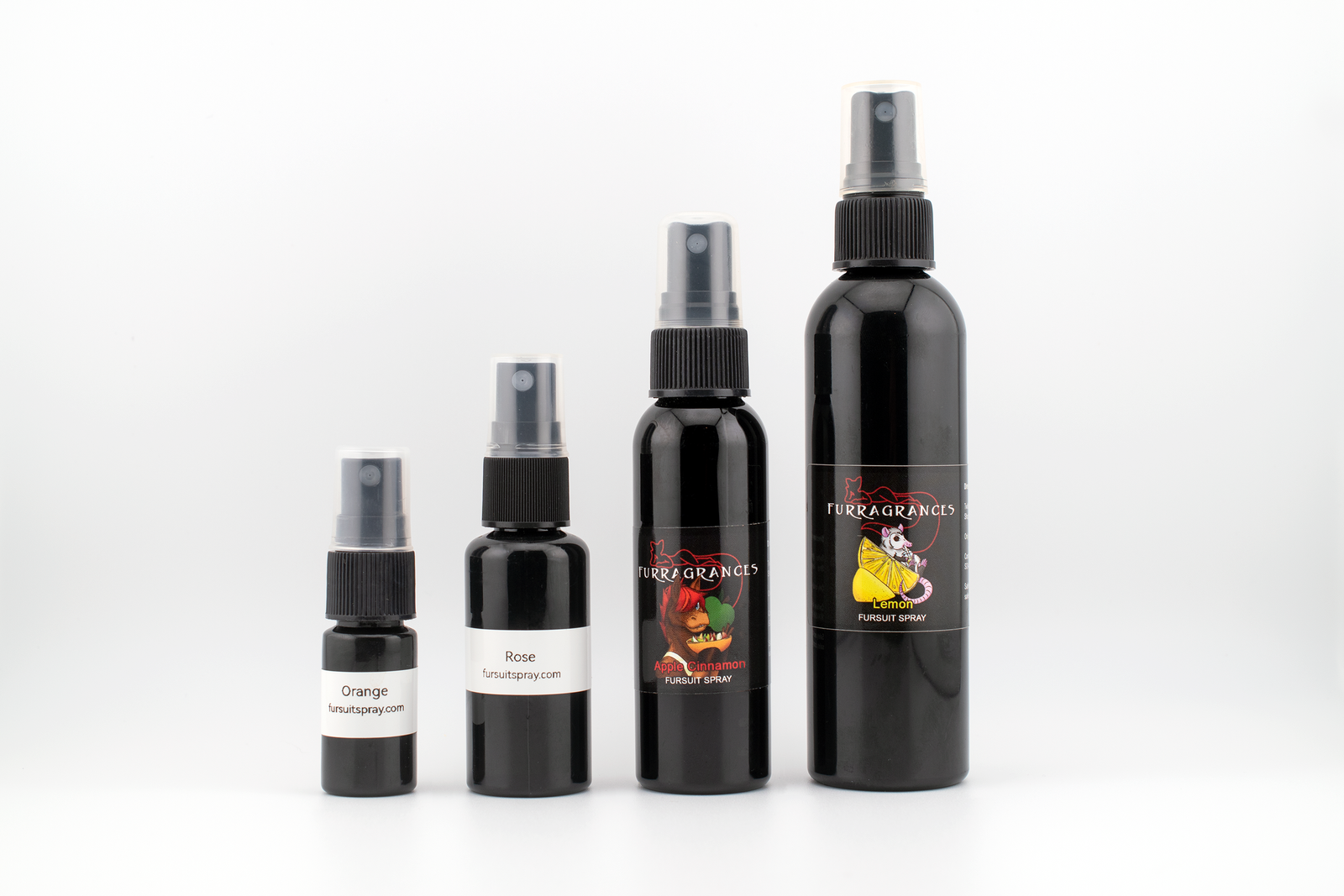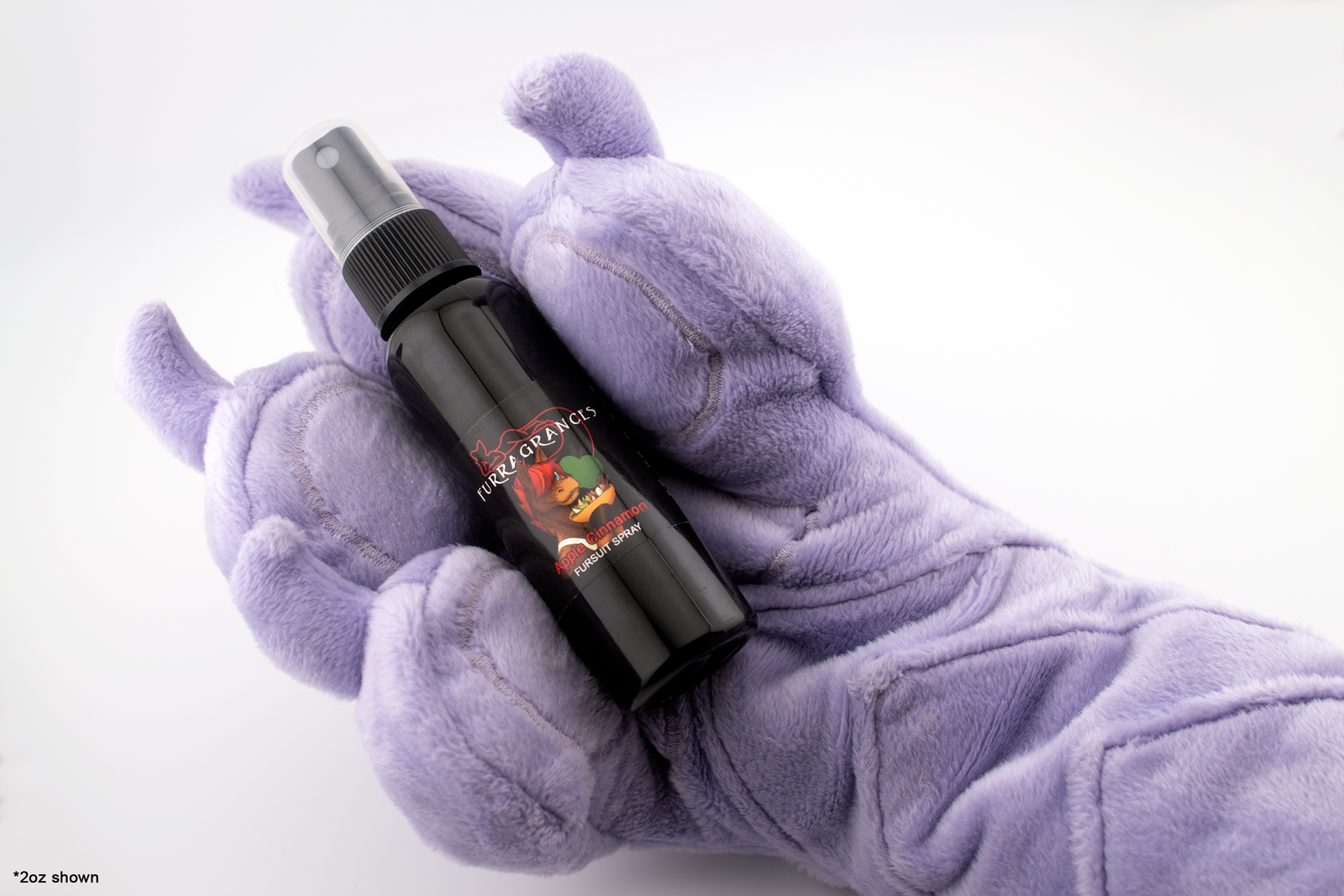 One 2oz bottle of our Costume/Fursuit Spray, available in a range of delightful scents, to keep your outfit smelling fresh even after long convention days.